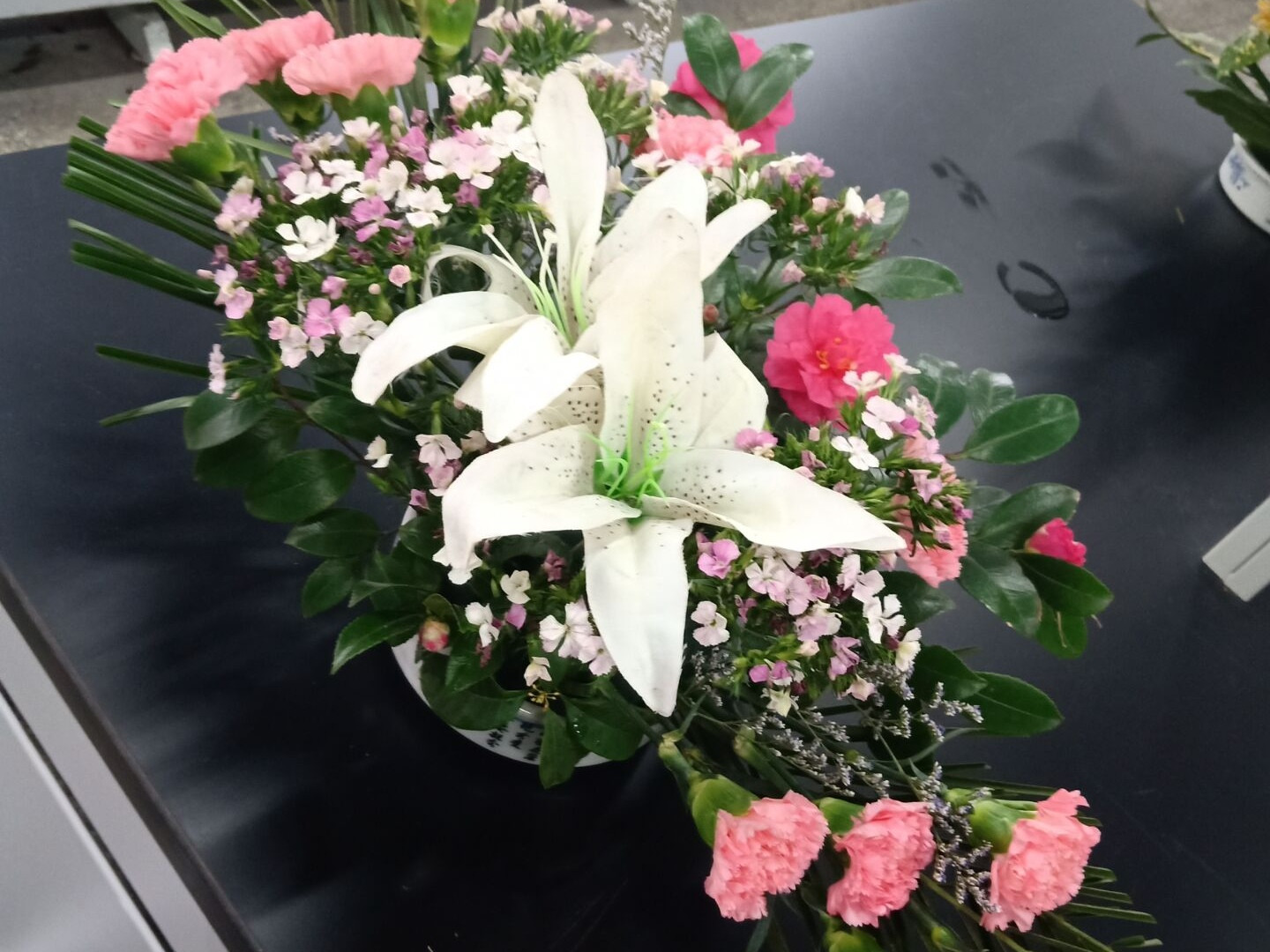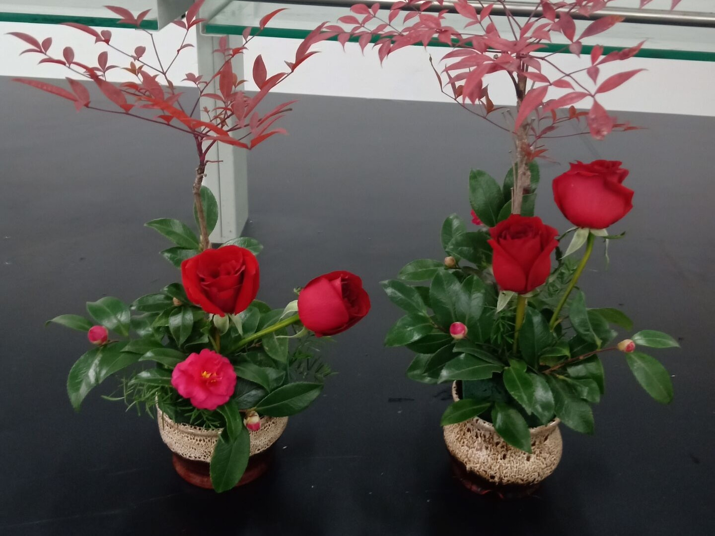 活动刚开始老师就先讲述了插花的要领,对花材进行简单的介绍,并且告诉了同学们一些简单的花材处理方法,例如如何给玫瑰去刺,如何使含苞待放的玫瑰舒展开来等等。紧接着同学们开始着手准备花草,开始制作自己的作品,同学们作品完成之后,老师对每一个作品都进行了点评,点评结束同学们与指导老师进行集体合影留念。