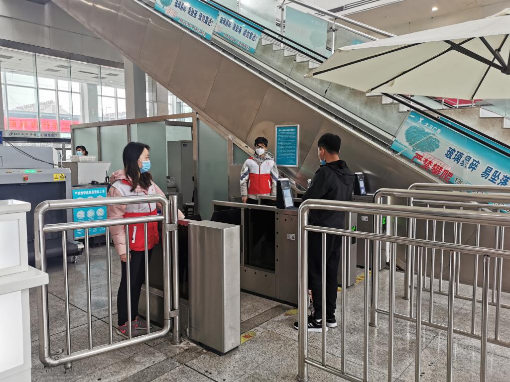随着返程复工流的到来,车站的人流量明显多了不少,铁路作为疫情防控的“出入关”,为了守护好这“第一道”防线,3月1日,校团委的5位年轻老师来到滁州北火车站,加入了志愿者服务队伍。他们分成两组,一组负责在进出站口检测旅客的体温,另一组在检票闸机前作为引导员。测量体温虽然是一项简单的工作,但由于巨大的人流量,志愿的老师需要不停的提醒旅客站在指定位置接受体温测量,另一组的老师们在检票闸机前耐心引导旅客顺利通过人脸识别系统进站。