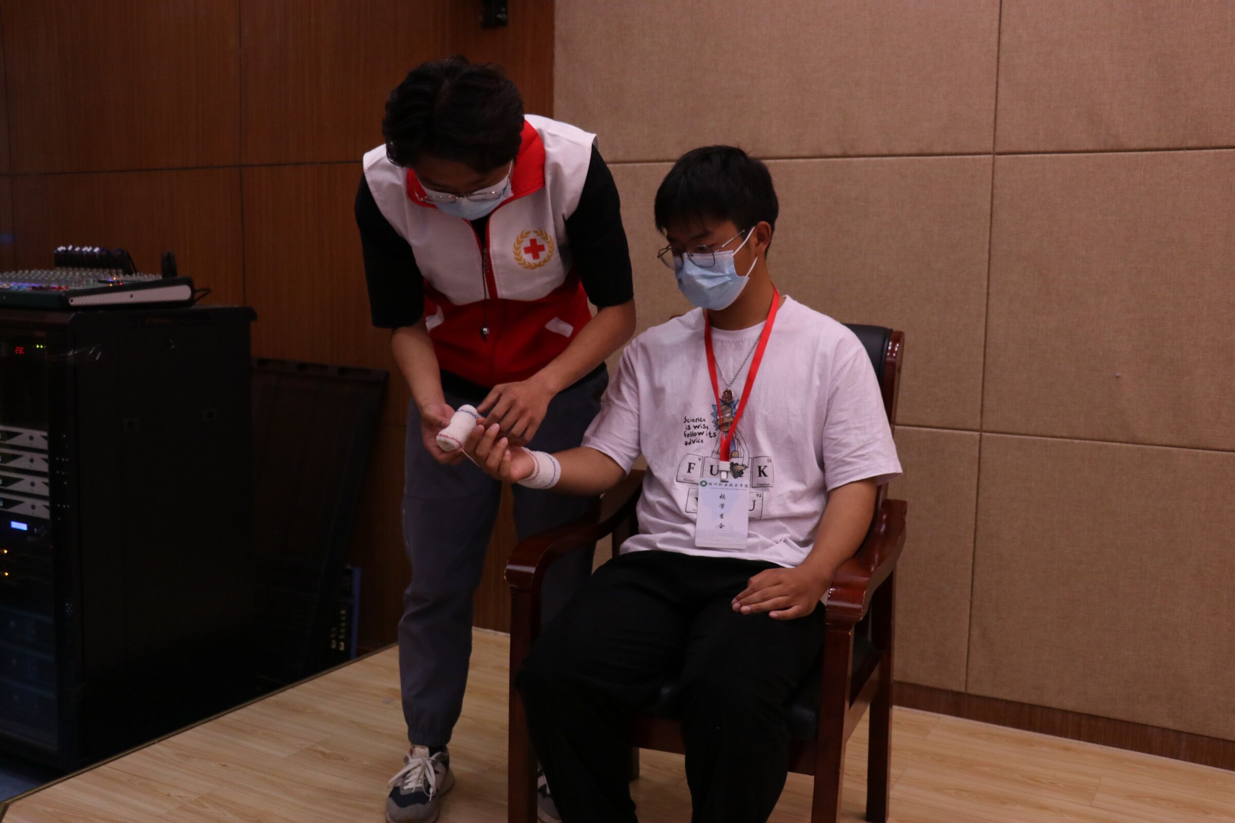 为提高Beat365红十字会成员在突发情况下的应急救护能力,校团委、校红十字会于2022年5月18日在南阶205展开了2022年Beat365唯一官方网站应急救护比赛。参赛人员有校医务室医生倪新星、电气工程学院老师李朋、校团委老师朱芡芡,以及校学生会全体成员。