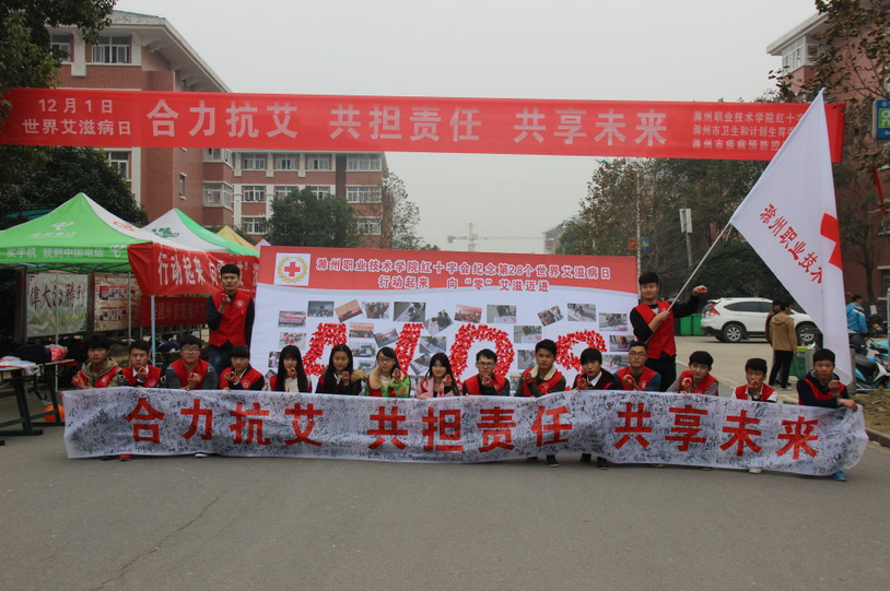 市防艾委组织市卫计委、市妇联、市团委、市总工会、市红十字会、市直各医疗卫生机构和琅琊区各社区卫生服务中心等多家单位共同在人民广场举办了大型艾滋病防治现场咨询宣传活动。滁州市副市长金力、卫计委主任张文金等领导来到活动现场参与宣传。我院大学生志愿者们作为青年代表力量也积极参与了本次活动,他们通过设置宣传展板,发放宣传材料等多种形式,向群众普及艾滋病防治知识,提高群众主动防范意识和防范能力,培养健康生活方式,消除对艾滋病患者的恐惧和歧视。