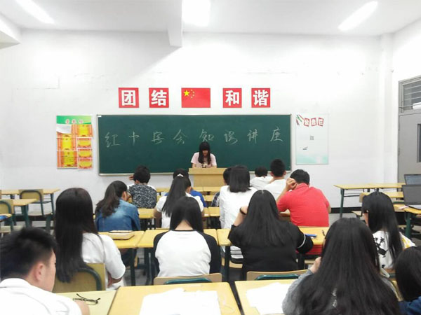 为加强对红十字会精神的认识,2016年5月5日,15移动互联班开展了红十字会知识讲座。 本次讲座主要从三个方面进行演讲,第一方面讲解红十字会的大体内容,第二方面讲述七项基本原则,第三方面介绍本次讲座的意义和作用,同学们认真的听讲并记录,讲座的中途同学们进行了互动,将讲座的气氛推到了高潮。 红十字是天空中火红的太阳,她的温暖时时刻刻射入人心,她在传递温暖的同时传递着人道,博爱,奉献。愿这缕灿烂的光辉流遍我们心中的每一个角落,愿这绚丽的颜色永远渲染我们!