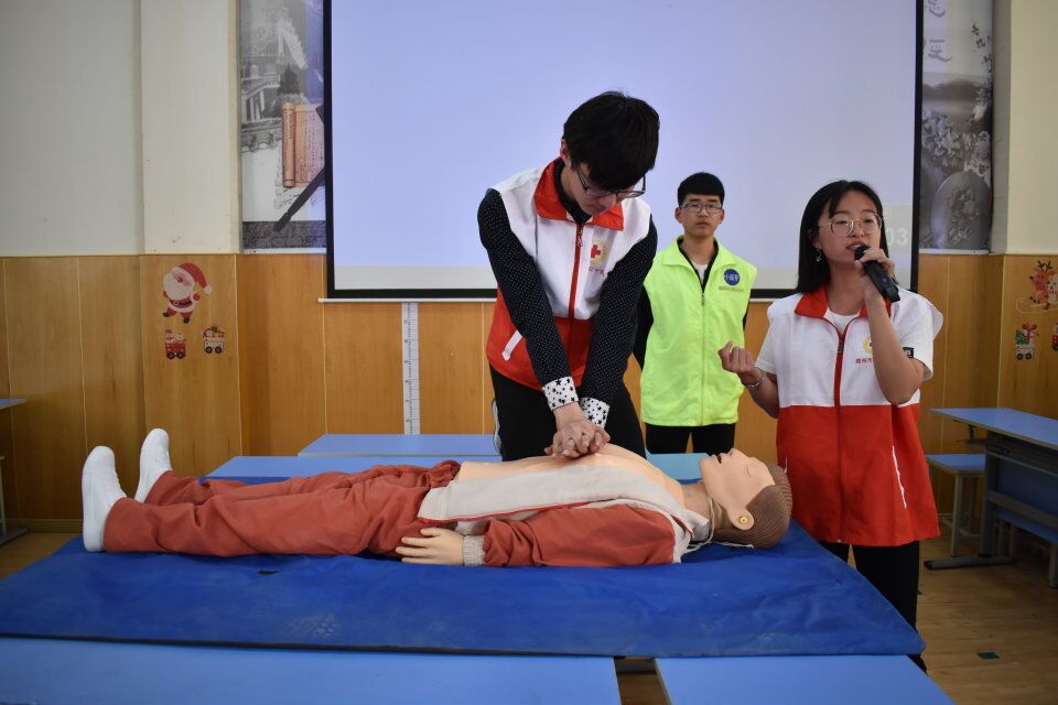 随着夏季溺水事故高发期来临,为确保学生安全,有效预防溺水事件的发生。4月11日,我院“小青亭”志愿者携手我院红十字会前往滁州市紫薇小学开展了防溺水安全知识与心肺复苏术一系列安全教育活动,共有近两百名同学参与了此次应急救护知识培训。