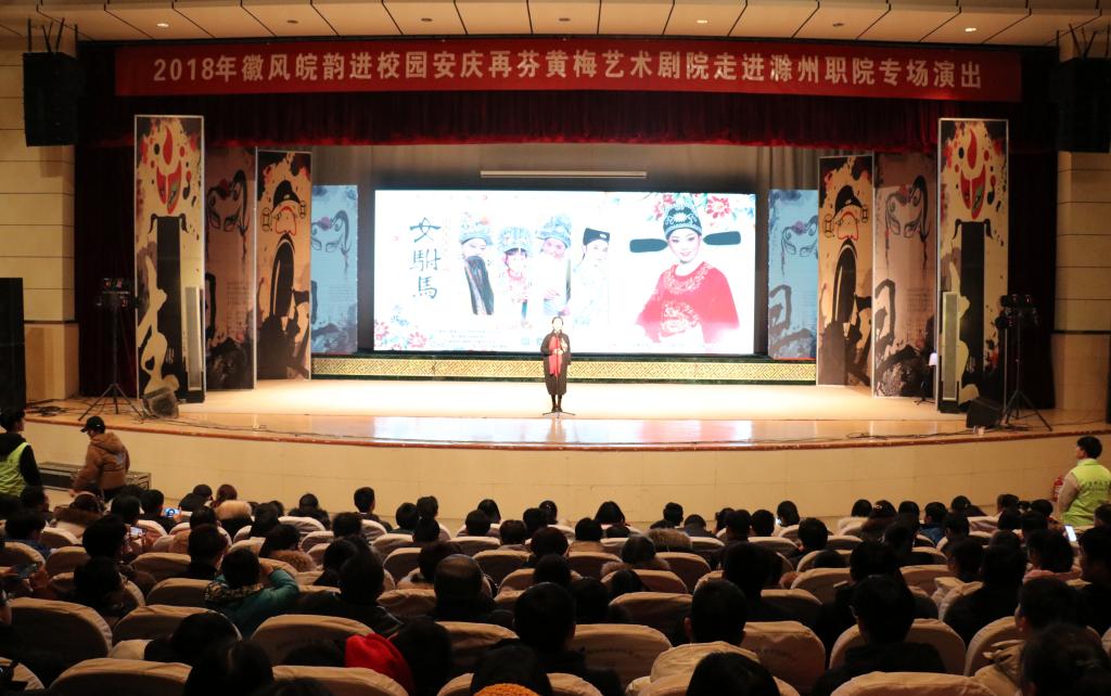 聆听黄梅戏,体会传统美。为弘扬中国传统戏曲文化,2018年12月27日,由中共安徽省委员宣传部、安徽省教育厅、安徽省文化厅主办的2018校园大舞台徽风皖韵进高校——再芬黄梅走进Beat365唯一官方网站专场演出在Beat365唯一官方网站学术报告厅成功举办。本着“走近大师、感受经典、陶冶情操、提高修养”的理念,让徽风皖韵走入高校、贴近学生,安庆再芬黄梅艺术剧院的表演艺术家,为Beat365师生带来了一场惊艳的视听盛宴。
