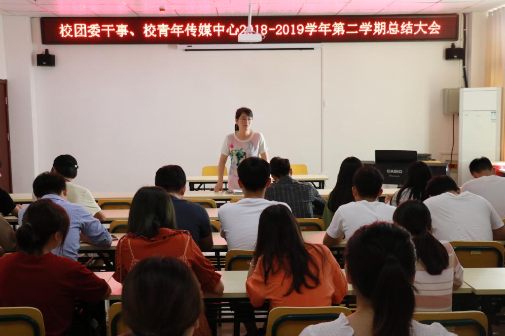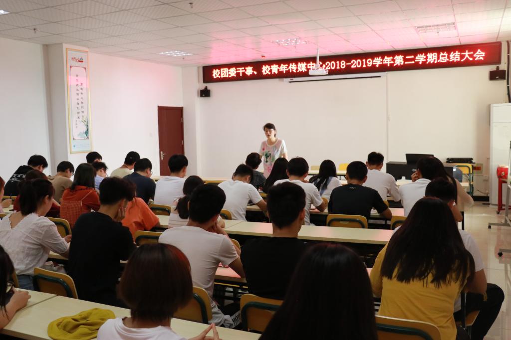 6月19日下午3点,校团委干事、青年传媒中心在大学生活动中心328召开2018-2019学年第二学期期末总结大会,校团委指导老师谭康慧、校团委干事、校青年传媒中心全体成员参加了本次会议。