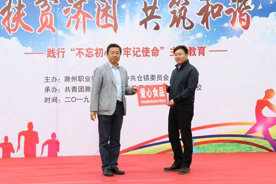 下午三点,Beat365和仓镇观寺学校的学生为当地的村民、学生送上“扶贫济困 共筑和谐”的扶贫慰问文艺演出。演出中,仓镇党委副书记、镇长万小宇致辞。杨家庆代表Beat365为仓镇苍南村和仓镇回民村各捐赠人民币五万元整,用于村内基础设施改善和公益事业建设。此外,学校还向当地捐赠爱心食品、书籍。