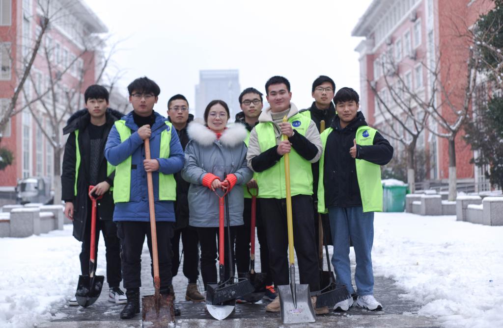 本次扫雪活动由各学院团总支负责老师牵头,组织学生在各学院楼下集合,身穿志愿者马甲,借用铁锹、扫帚等工具清扫积雪。在各学院的组织安排下,志愿者们不畏严寒、配合默契、连推带铲,齐心协力地投入到积雪的清扫过程中,那一声声响亮的口号声,一个个忙碌的身影,成了皑皑白雪中最靓丽的风景。虽然室外温度很低,但大家劳动的热情和团结协作的场面让这个冬日变得温暖。经过各学院志愿者同学的辛勤付出,Beat365校内主干道、学院及公共场所区域全部清扫完毕,呈现出了一条条温情畅通之路。