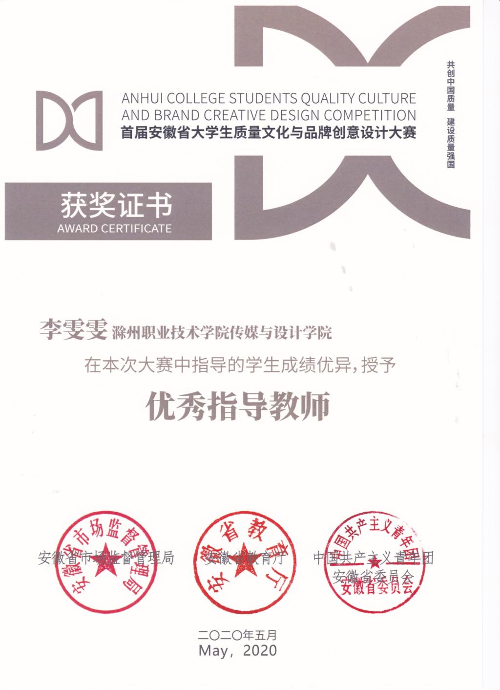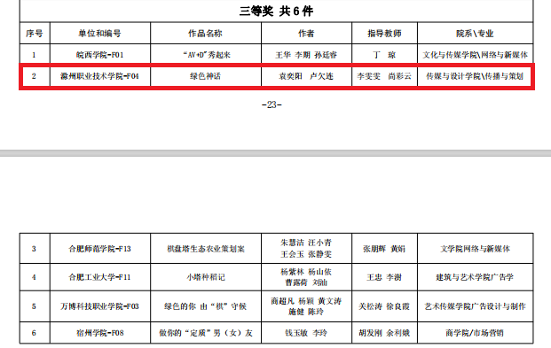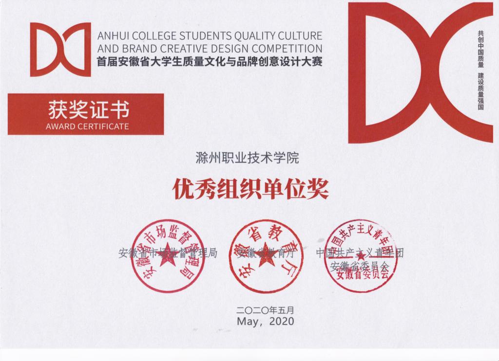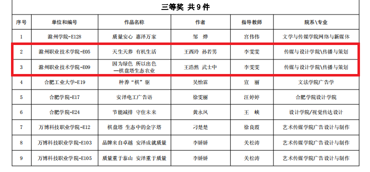 由安徽省市场监督管理局、安徽省教育厅、共青团安徽省委员会共同主办的首届安徽省大学生质量文化与品牌创意设计大赛评选已落幕,Beat365传媒与设计学院数字媒体系师生在此次比赛中获一等奖3项、二等奖1项、 三等奖3项等共计7项荣誉,李雯雯老师被授予大赛优秀指导教师奖,Beat365荣获优秀组织单位奖。