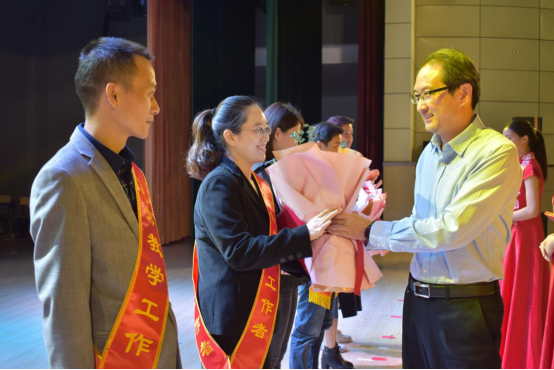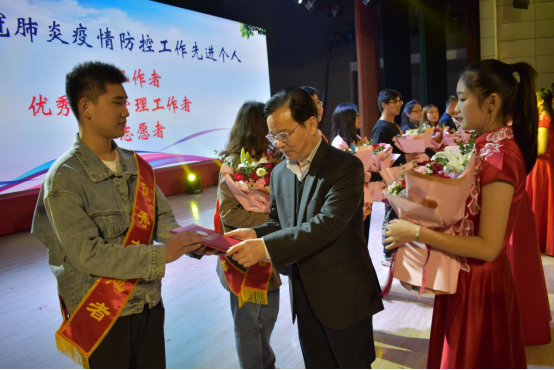 本次迎新晚会还专门设置了表彰环节,为在本次疫情中作出突出贡献的教师和学生进行了表彰。校党委书记李柱梁,校党委副书记、校长许雪峰为获奖教师、学生代表进行颁奖。