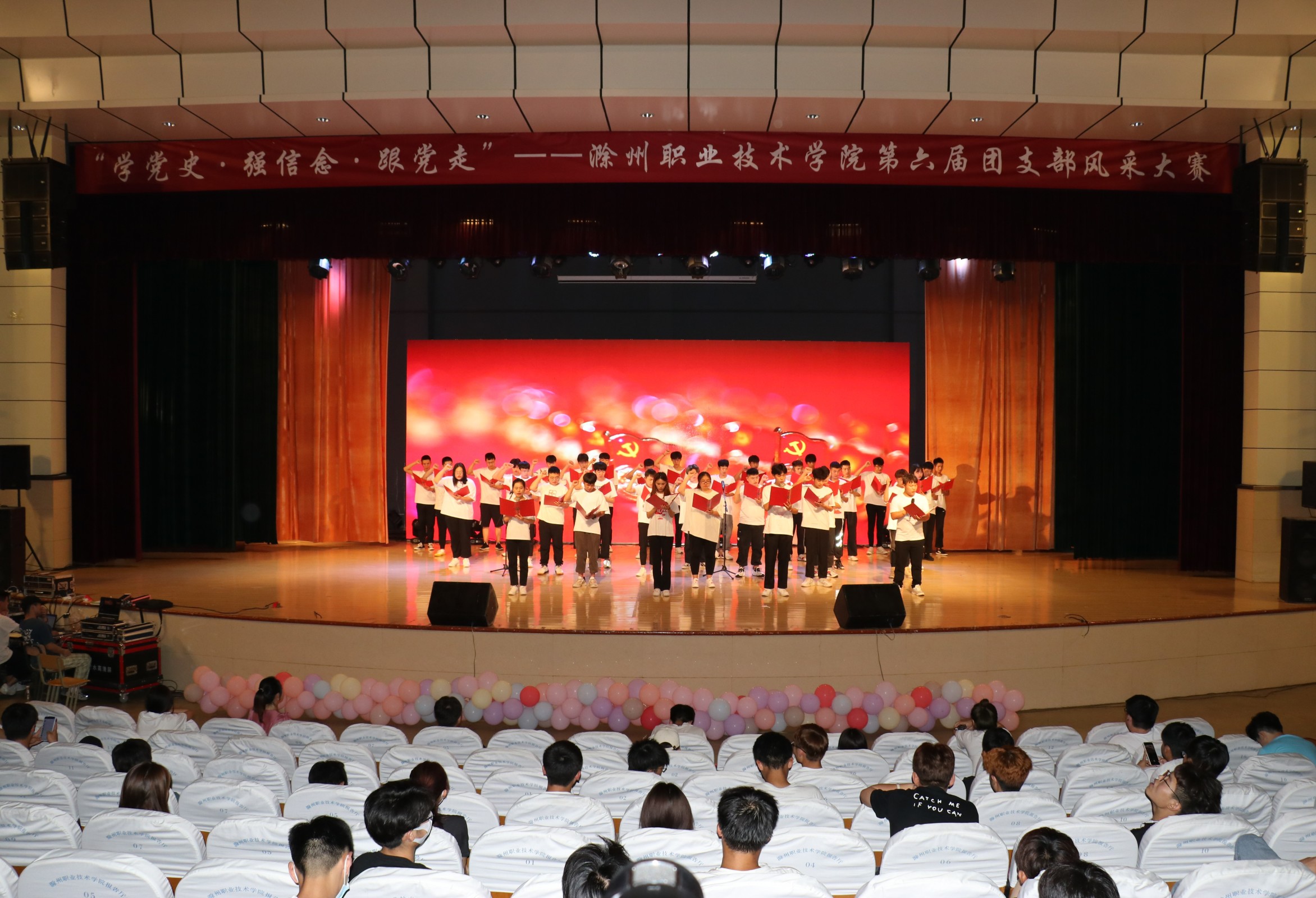2021年6月9日下午两点半,由校团委主办、校学生会承办的“学党史 强信念 跟党走”第六届团支部风采大赛总决赛在学校一楼报告厅成功举办。通过层层选拔,共有10支队伍登上了决赛舞台。本次比赛特别邀请了校党委副书记杨家庆作为比赛的嘉宾,滁州学院团委书记庚丽娜、滁州团市委副书记戴莺、滁州团市委组织部部长田增青、滁州技师学院团委书记张婷婷担任本次比赛的特邀评委。