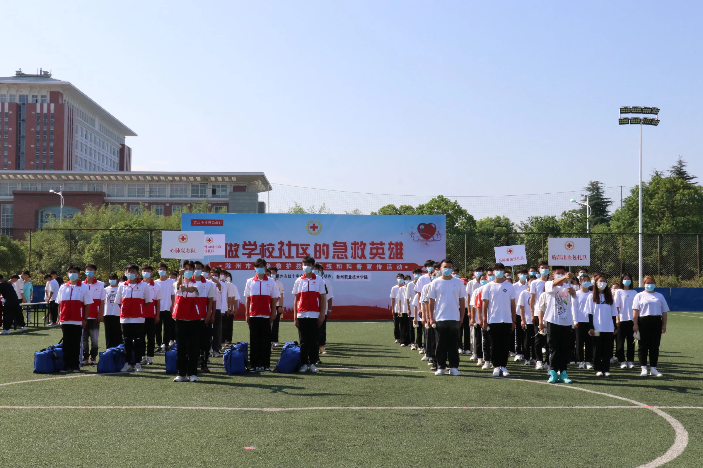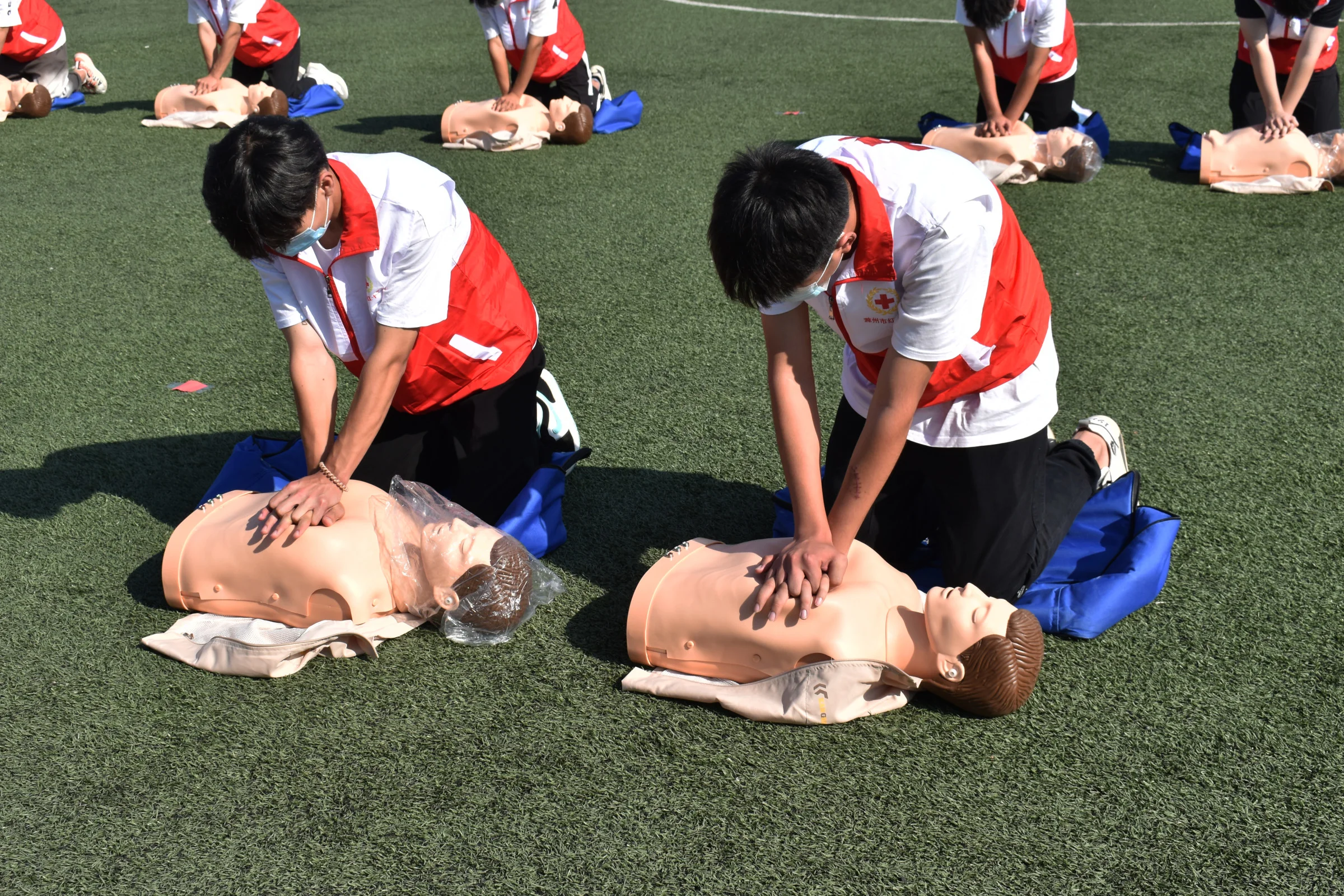 活动现场,Beat36577名红十字会志愿者在滁州市红十字会专业老师的指导下,分为四个方阵,向同学们展示了心肺复苏、头部出血包扎、胸部出血包扎、动脉出血包扎等生活中实用的应急救护技能。
