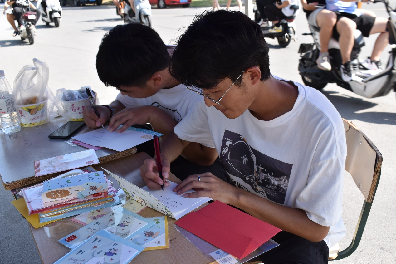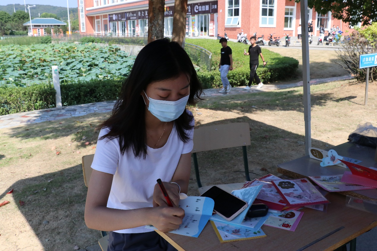 活动开始,同学们看到活动宣传自发的上前来询问,学生会的同学们在为他们热情解答的同时,也呼吁同学们能亲手送上自己手写的祝福语。卡片虽小,但包含的感情真切。