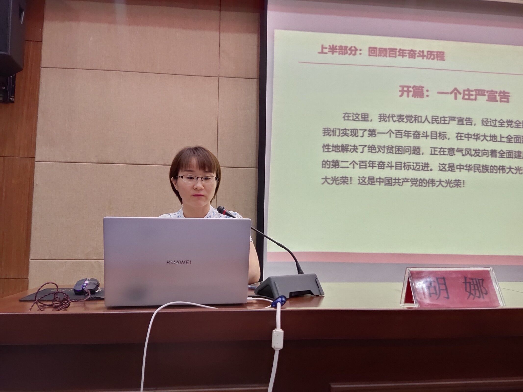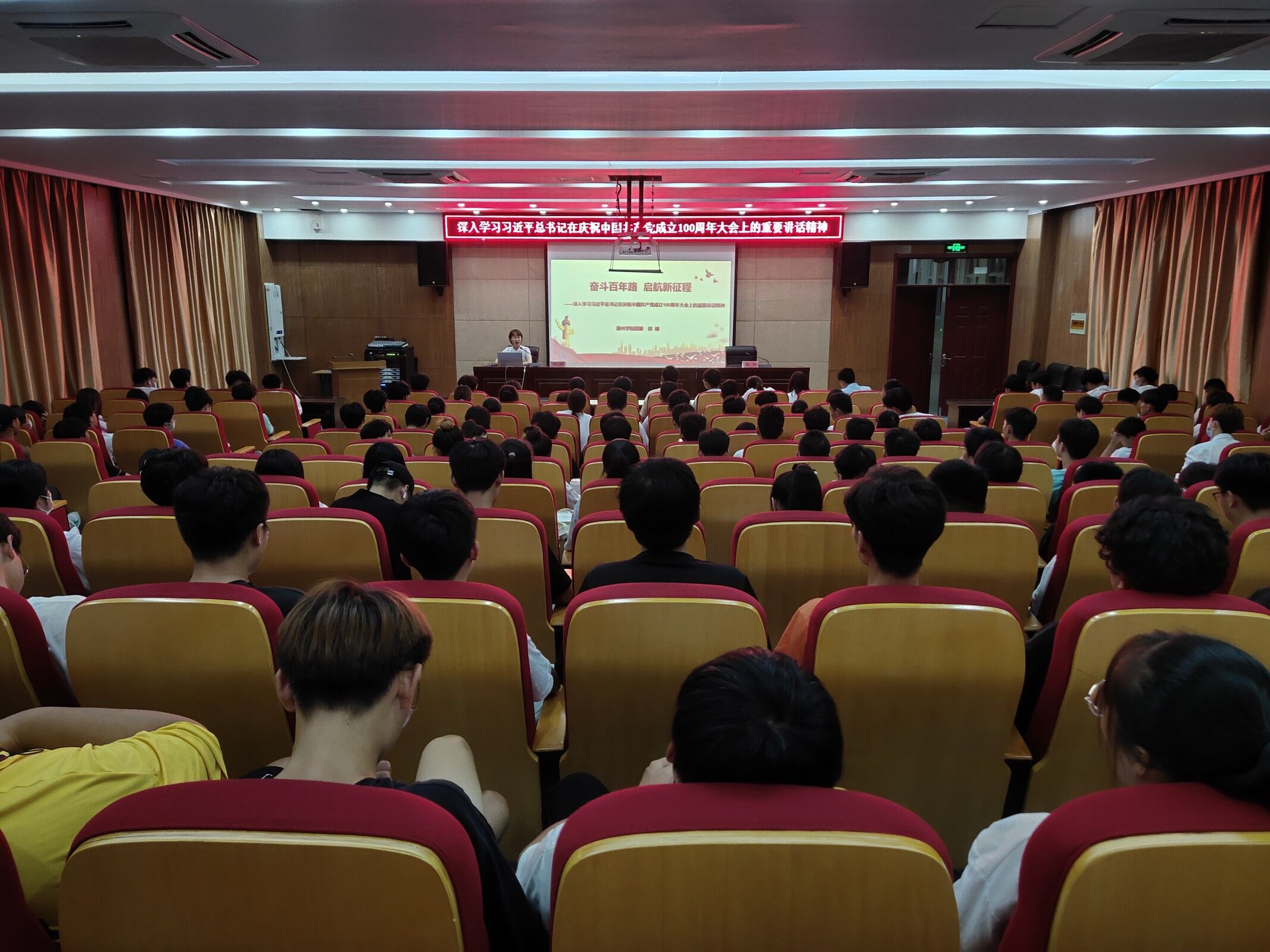 在培训过程中胡娜书记形象、系统地将习近平总书记“七一”讲话分为“两个部分”、“四个篇章”、“九个坚持”,并在回顾党的百年奋斗问题时用“开天辟地”、“改天换地”、“翻天覆地”和“惊天动地”四个词概括了习近平总书记的上半部分讲话;用“九个坚持”概括了习近平总书记的下半部分讲话,在提到新的历史起点上需要开拓进取的志气、骨气和底心时,胡娜书记引用了西安交大王树国校长的讲话来为同学解释“三气”含义。
