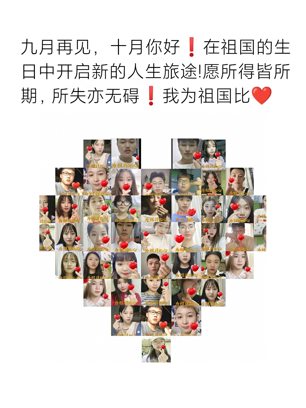 为进一步培育和践行社会主义核心价值观,唱响爱党、爱国、爱家乡的主旋律,表达对伟大祖国的良好祝愿,展现Beat365唯一官方网站学子良好的精神面貌。校团委组织各二级教学院部团总支、学生会开展了“迎国庆,颂祖国”黑板报评比、“我和我的祖国”主题团课、“我爱你,祖国”、“青春向党,奋斗报国”、“爱祖国 庆国庆”、“祖国我想对你说”、“我为祖国比心,向国旗敬礼”、“锦绣河山,盛世华诞”等系列主题团日活动和爱国主义教育活动,开展我与国旗同框,我为祖国祝福,观看爱国主义教育纪录片、主题公益片等一系列活动主题教育活动,喜迎祖国72周年华诞。