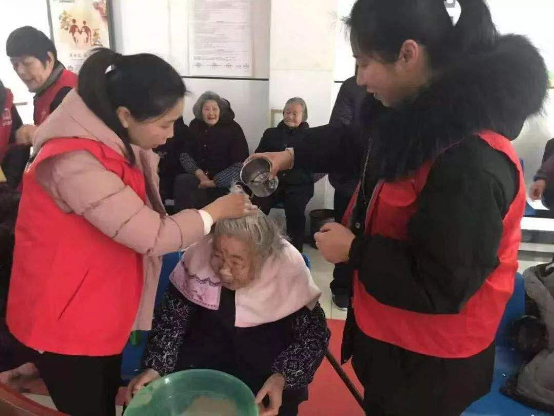21旅管2班徐诗怡同学在江苏省盐城市亭湖区步凤镇养老院,帮助老人们打扫房间、为老人们洗头,陪他们度过一个欢乐吉祥的中国年。
