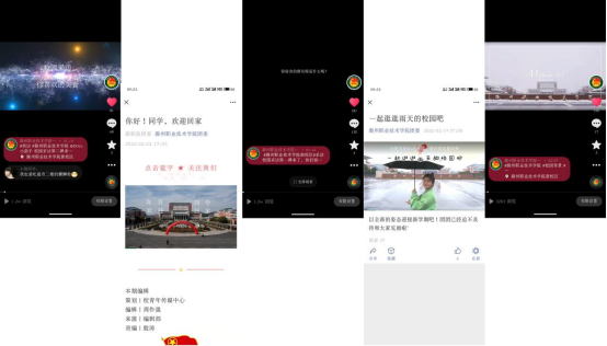 本次活动共分为“微视频暖归心”、“微志愿助校园”、“微提醒明要求”、“微宣传启新程。”四个部分。“微视频暖归心”以滁职校园快乐学习、舒心生活景象为背景,精心制作短视频6期,在师生返校前夕,提前引导学生珍惜学校好环境、好时光。