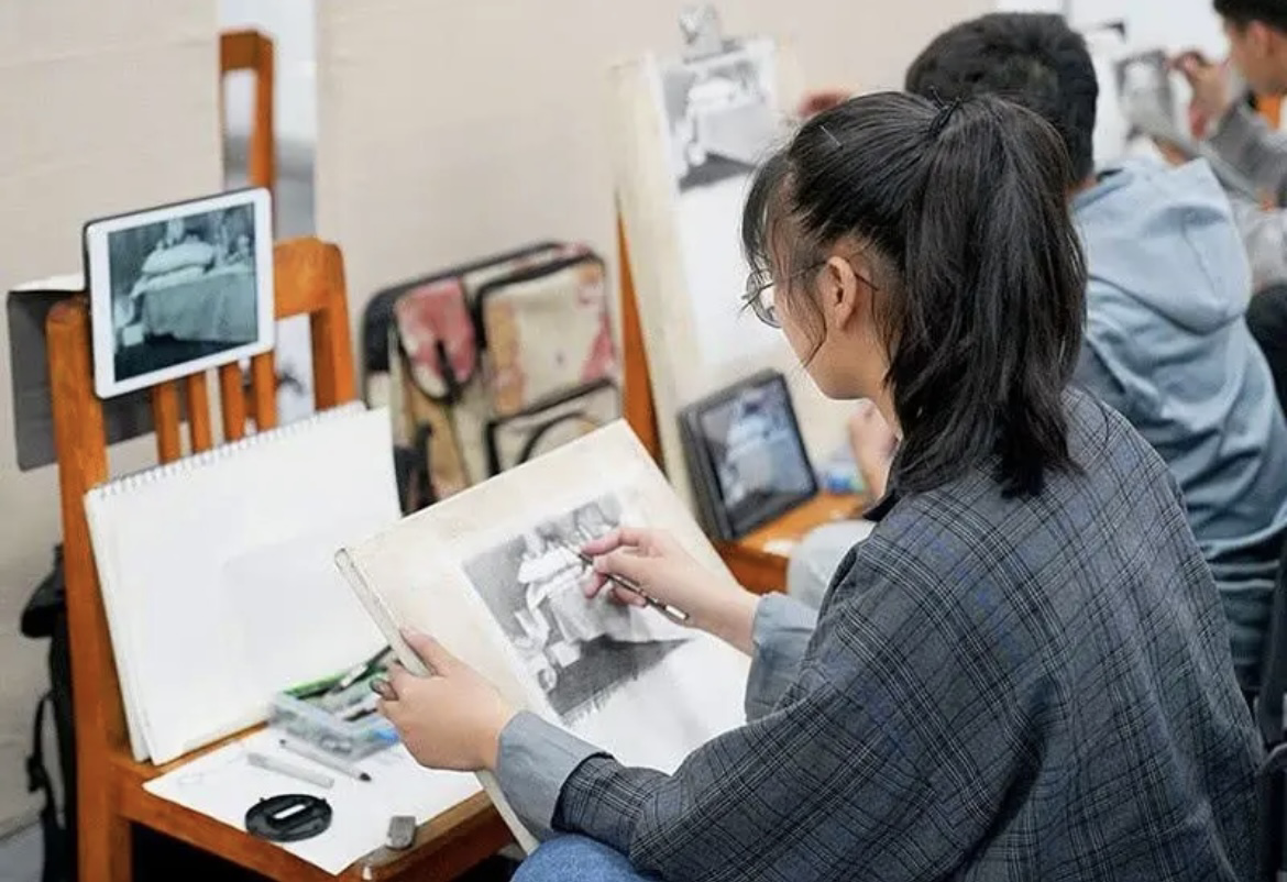 活动中,社员们现场进行美术作品创作,并就各自画作的美术技巧、作品主题等方面进行研讨交流。