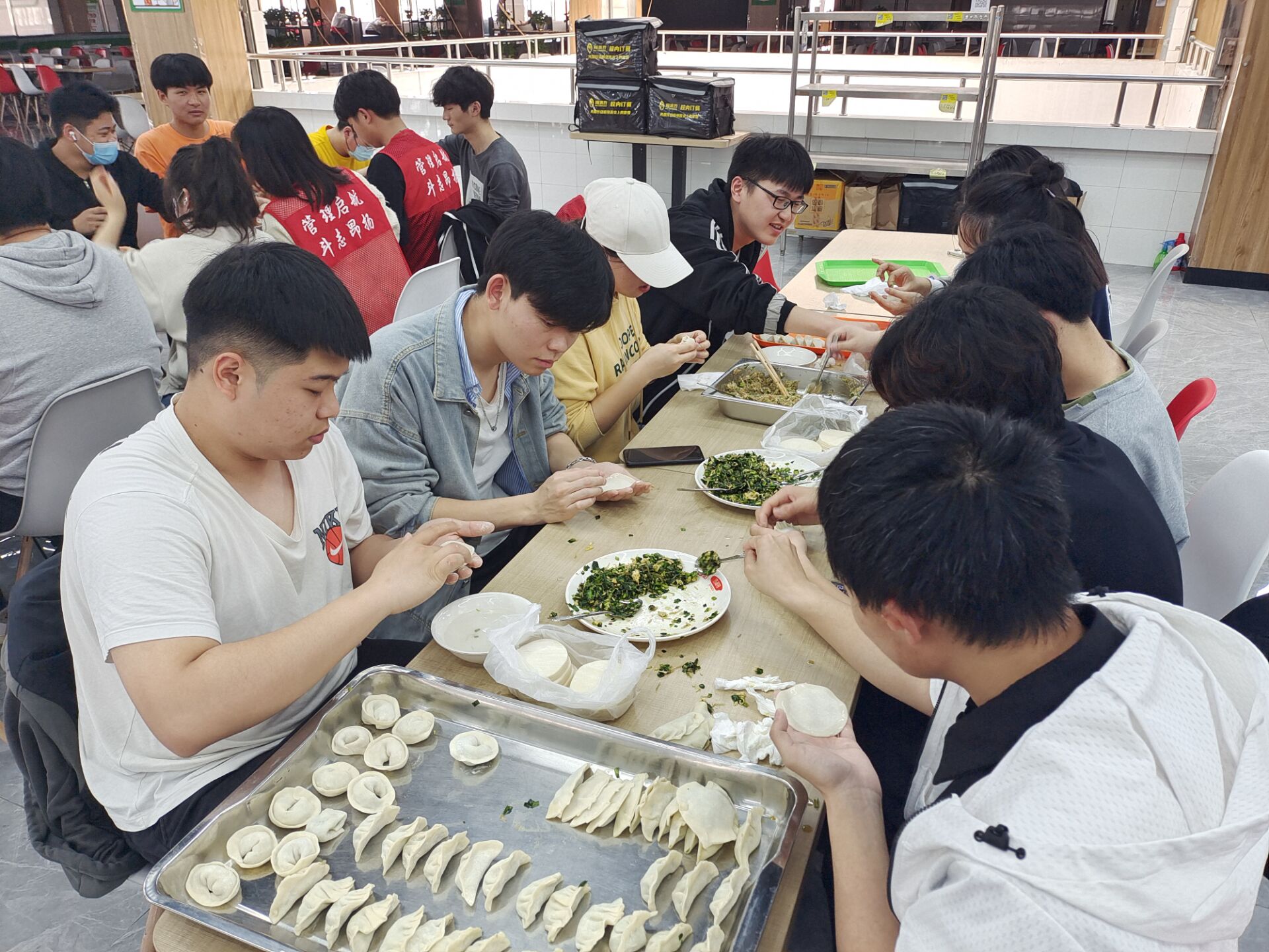 2022年3月16日下午两点,未来企业家协会食品与营养协会在食堂的三楼与食堂的负责人合作,举办了本次“包饺子送温暖”活动,参与活动的还有管理学院学生志愿者。