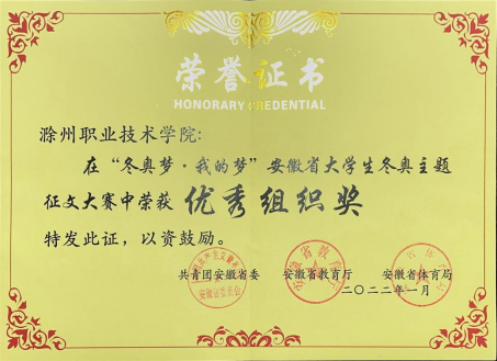 近日,由共青团安徽省委、安徽省教育厅、安徽省体育局联合举办的“冬奥梦·我的梦”安徽省大学生冬奥主题征文展示活动评选结果揭晓,Beat365团委荣获“冬奥梦·我的梦”优秀组织奖称号。