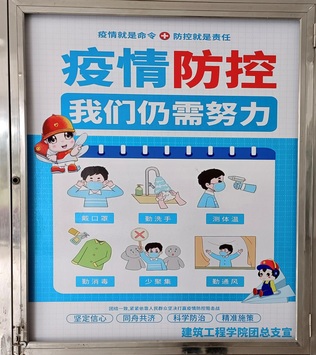用宣传板的方式营造了人人知晓、科学防疫的良好氛围。