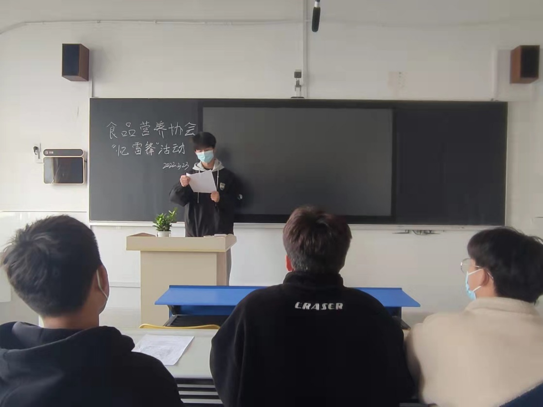 为学习、传承雷锋精神,3月23号下午2点半,食品营养协会与未来企业家协会在1318教室举办了“忆雷锋”的好人好事演讲活动。