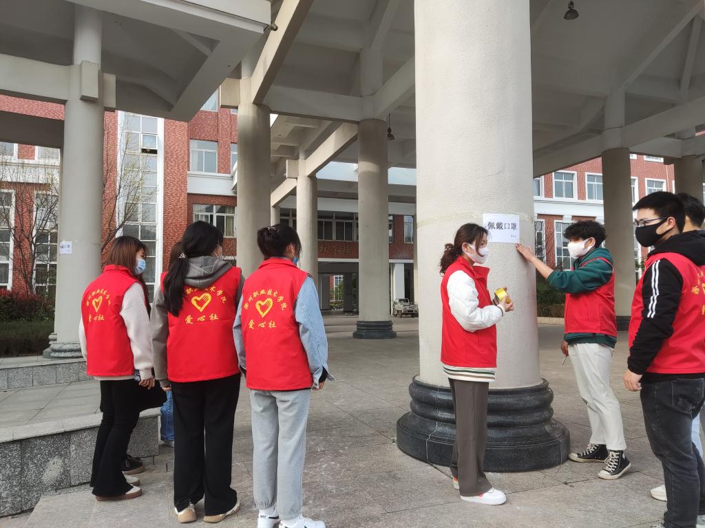 此次活动由社长及其副社长的带领下,社员们在各个教学楼下张贴宣传标语,督促同学们佩戴口罩。同时,社团成员在各个教学楼下站岗,并在大课间巡逻检查同学们口罩佩戴情况。对于没佩戴口罩的同学,社团成员会对同学们进行疫情防控知识宣传,告诉他们佩戴口罩的重要性。
