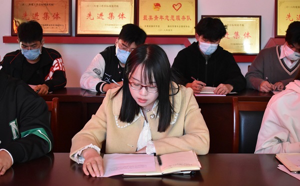 团委副书记 张文:习近平总书记在党的二十大报告中,专门用一段话寄语青年,为我们做好青年工作指明了前进方向。我们要牢记习近平总书记的嘱托,坚持为党育人的使命,有效发挥桥梁纽带作用,认真履行引领青年、组织青年、服务青年的职责,团结带领广大团员青年听党话、跟党走,踔厉奋发,勇毅前行,为全面建设社会主义现代化国家、全面推进中华民族伟大复兴贡献青春力量!