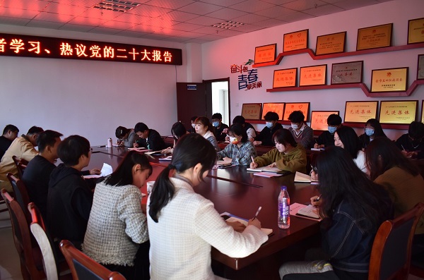 党的二十大报告在Beat365各级团干部中引发热烈反响,10月18日下午3点,团委全体工作人员和各二级学院团总支书记、副书记在大学生活动中心会议室共同学习报告内容、领会报告精神、交流学习感悟。