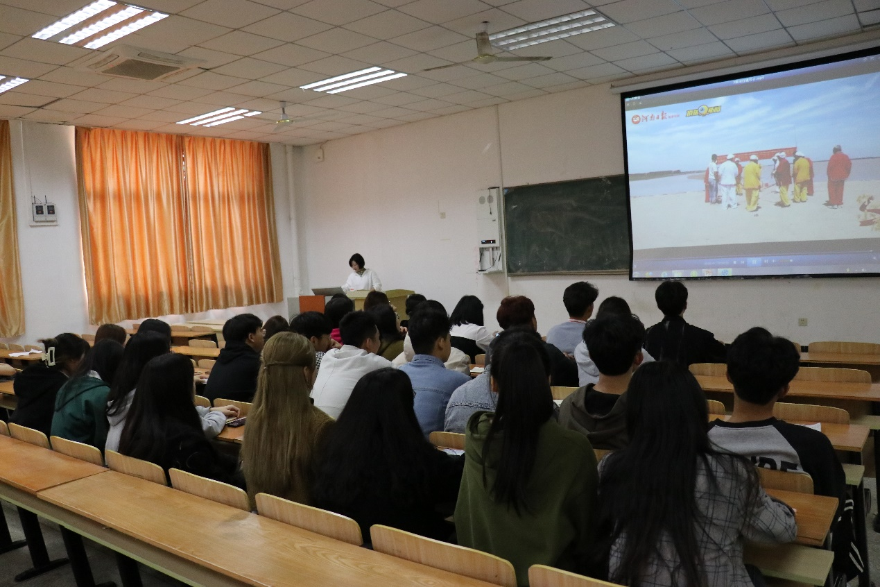 王蓓蓓老师首先介绍了中国民歌的起源,指出民歌是劳动人民集体的口头创造,是民间文学的一种形式,接着她重点叙述了三种具有代表性的名歌类型:劳动号子、山歌、小调,现场播放了许多很具有代表性的地方民歌,使在座的每一位学生都感受到了中国民歌是人民在社会实践上的精神结晶,是他们对美好生活的向往和文化的传承的坚定自信,完美的展现了中华文化的包容性。
