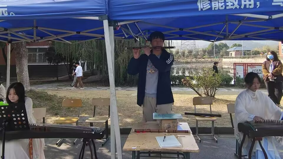 活动的的开始由本次活动负责人带领大家进行签到活动,随后同学们将活动所需要的帐篷、乐器以及桌椅集中摆放整齐,部分同学换上中华传统服饰进行才艺表演。古筝和笛子的声音完全融合,娓娓动听,吸引了许多路过的同学纷纷驻足欣赏。一首《大鱼》之后,本次活动也进入尾声。活动结束后由各社团社长带领社团成员整理收拾桌椅帐篷,打扫卫生。随着同学们的签退,本次活动也就此落幕。