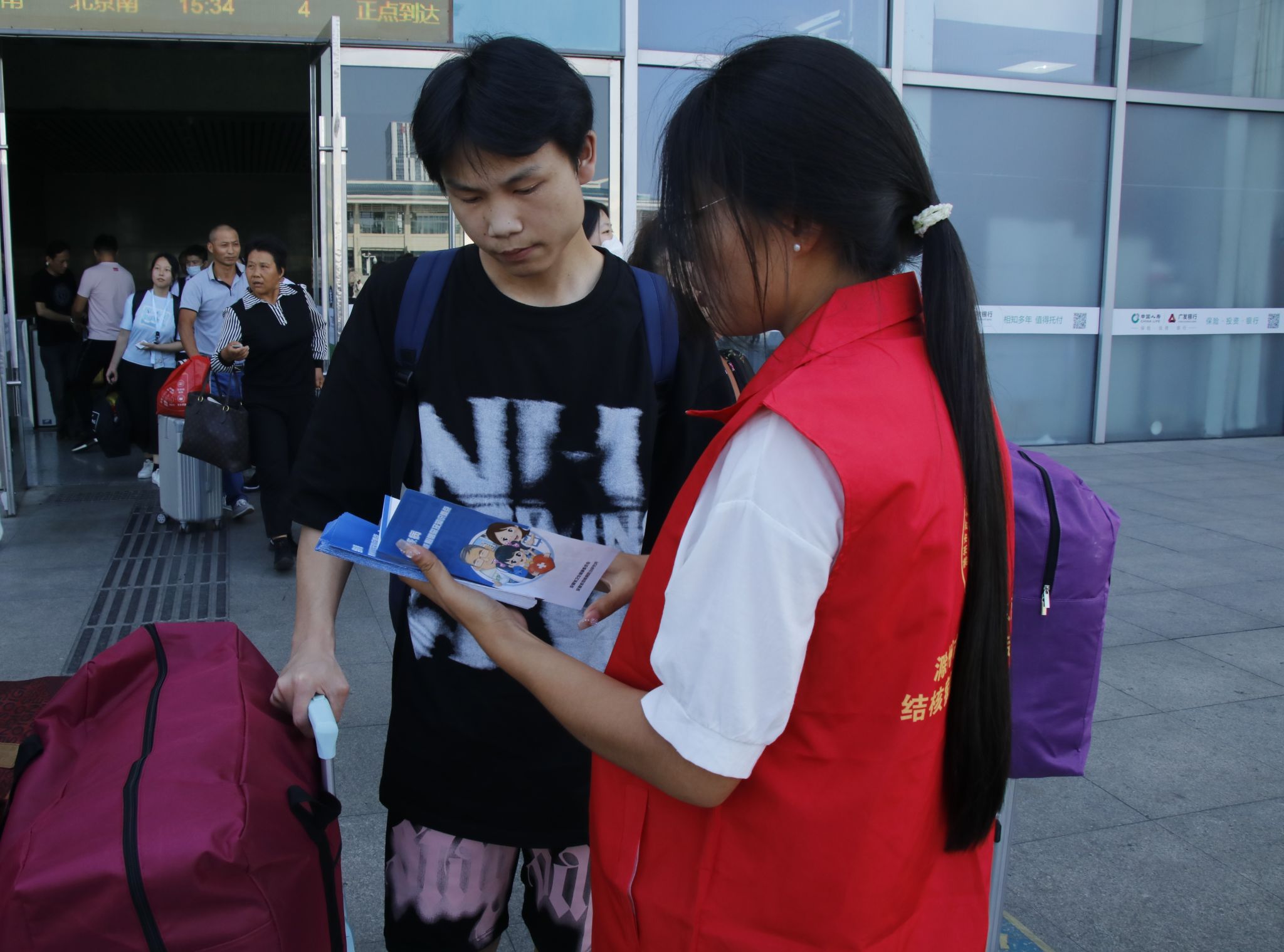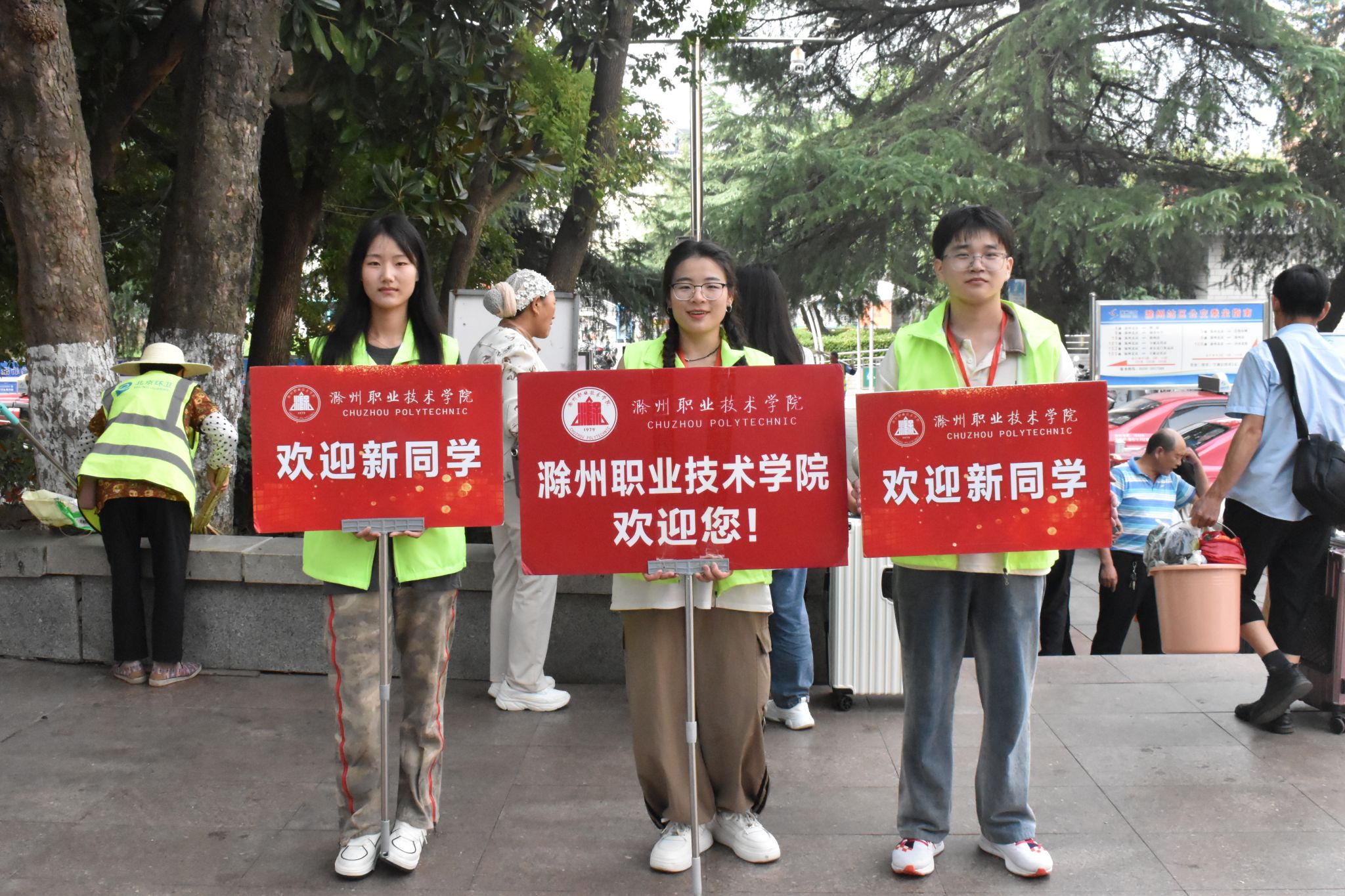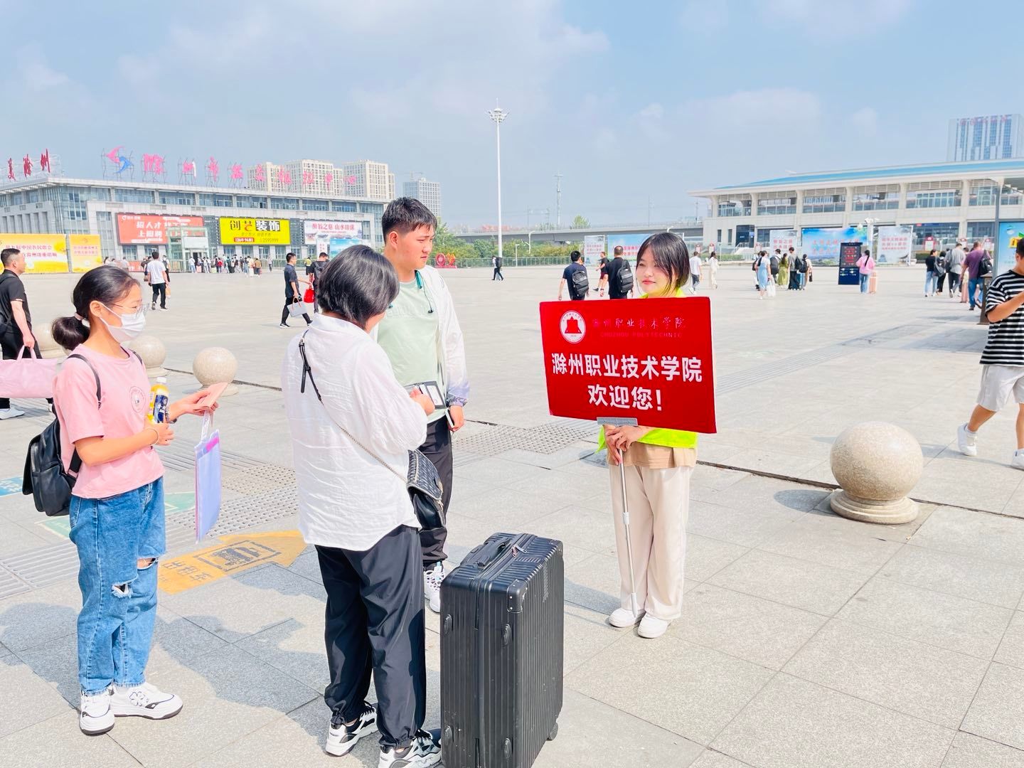 伴随着清晨的第一缕阳光,志愿者们已到岗就位,全天候、全过程、全方位,守护新同学,在学校门口、在滁州南站、在滁州北站,设有接待点,新生和家长一下车,众多的迎新志愿者马上微笑着迎上去:“你好”,“滁职欢迎您”。