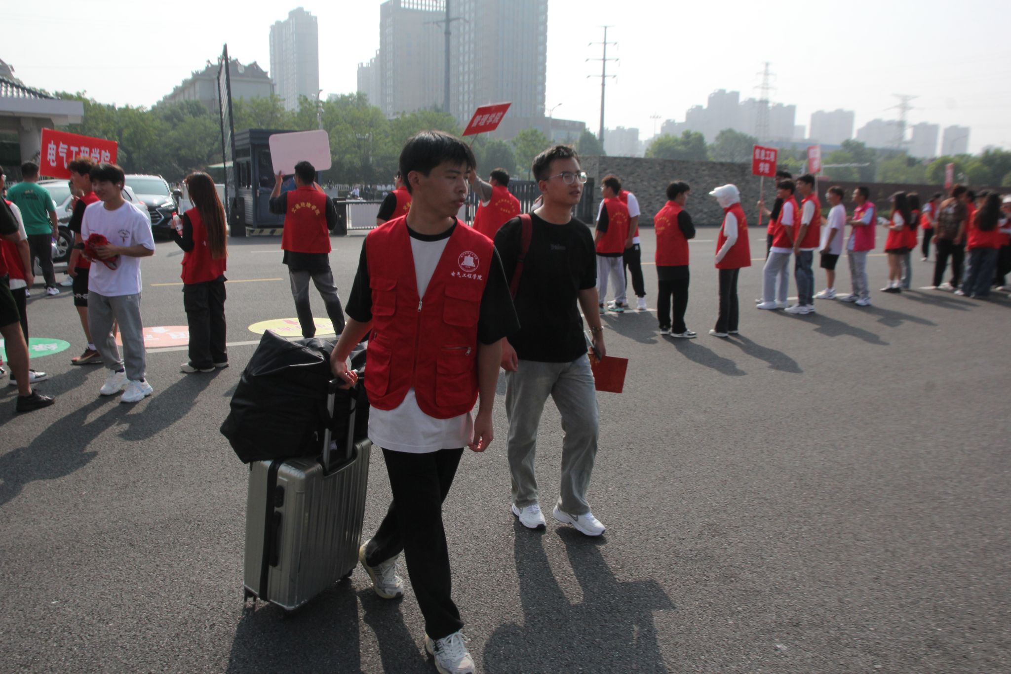 校外迎新志愿站,校团委组建了迎新车队,用最真诚和热情服务为远道而来的新生提供了暖心的服务。