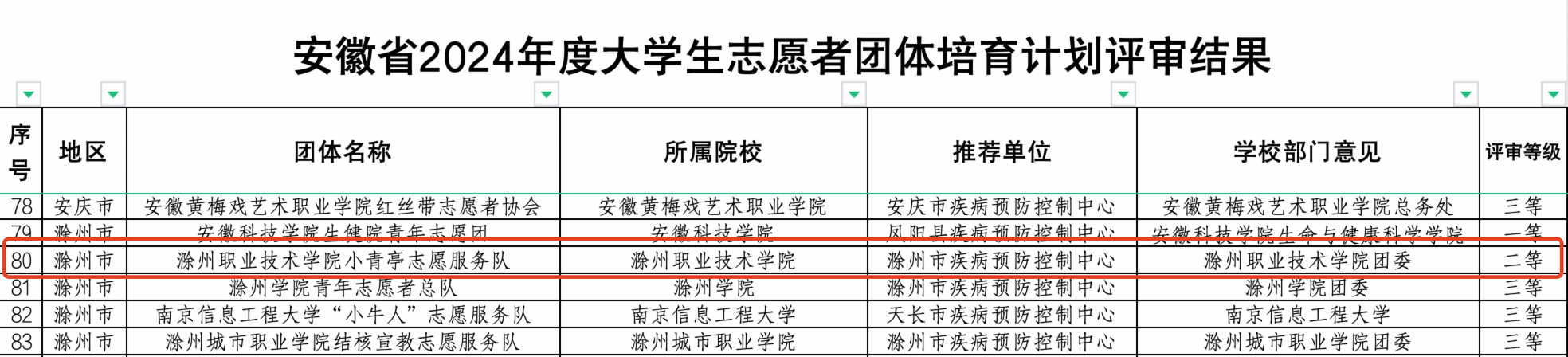 近日,Beat365小青亭志愿者愿服务队获批2024年度“安徽省百千万志愿者结核病防治知识传播活动大学生志愿者团队培育计划”二等资助,是滁州市区高校今年最好成绩。