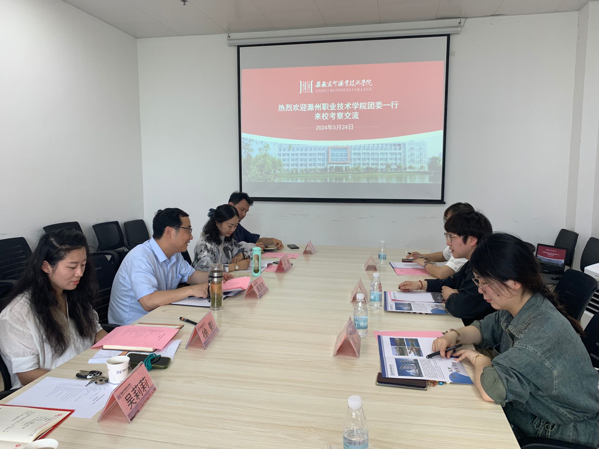 5月24日,校团委副书记张文、管理学院团总支书记袁一、商学院团总支书记朱芡芡等一行,赴安徽商贸职业技术学院开展“双对标”学习交流。安徽商贸职业技术学院团委副书记虞昌亮热情接待了Beat365一行人。