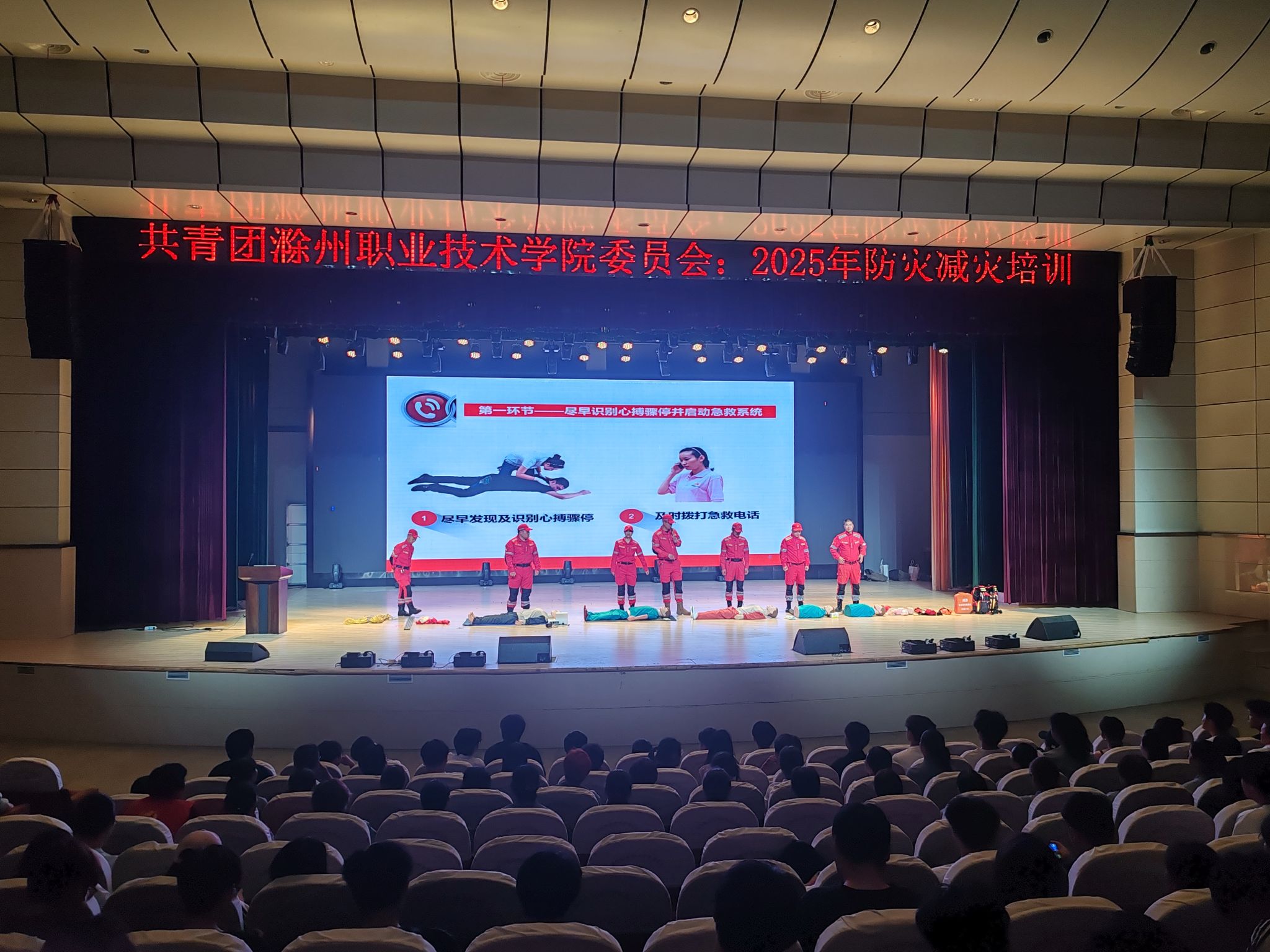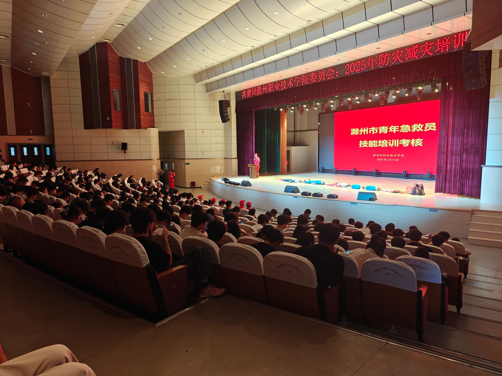 在第17个全国防灾减灾日来临之际,为切实增强学生防灾减灾意识,提升应急自救互救能力,5月14日下午,校团委联合滁州市青志协救援队,在学校大礼堂成功举办2025年春季防灾减灾暨“青年急救员”培训活动,全校各二级学院学生代表及后勤服务中心共600余人参加培训,为校园安全防线建设注入坚实力量。
