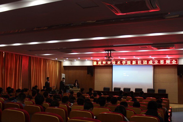 社团答辩会在热烈的掌声中拉开帷幕,参与社团PPT的内容精彩纷呈并且富有新意,各社团负责人简要明了地阐述了新社团的办团宗旨、活动安排、经费来源等。答辩过程中,评委就新社团面向对象、专业性以及社团管理过程中可能出现的问题进行提问,社团负责人也结合实际进行回答,嘉宾老师进行点评,最后新社团代表上台与嘉宾老师合影留念。