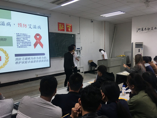 首先,王梦介绍了HIV与ADIS的区别,让在场同学了解了艾滋病感染者和病人的区别;金超又播放艾滋病宣传片《爱在阳光下》,接着向同学们介绍了艾滋病的传播方式,解开了一直以来大家对艾滋病传染方式的误解,让大家了解了HIV存在在人体的四液一汁;又介绍了我国艾滋病感染的现状——青年感染人群在逐年上升,为同学们敲响警钟;再由此延伸,详细讲述了艾滋病以及其他性病的预防与治疗方面的知识;最后,又向同学们演示了安全套的正确使用方法。至此,此次讲座圆满落幕。