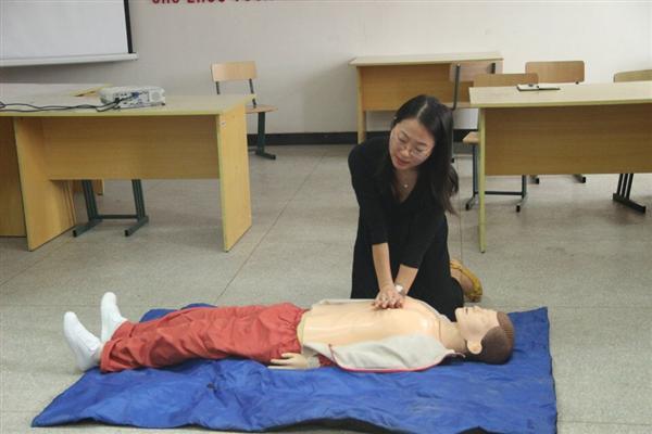此次应急救护培训邀请了市红十字会的孙宁老师主讲,采取理论知识讲授及救护技能实际操作相结合的模式进行,围绕红十字会运动基本知识、救护新概念、心肺复苏、创伤救护展开讲解。并通过案例讲解,介绍发生意外伤害时采取的医疗救助措施以及注意事项,重点强调了紧急救助工作的紧迫性、及时性。随后,在老师的指导下,同学们模拟了心脏骤停、呼吸道异物堵塞等险情时,听呼吸、按压心脏和人工呼吸的操作方法,着重要求操作的规范性和科学性。
