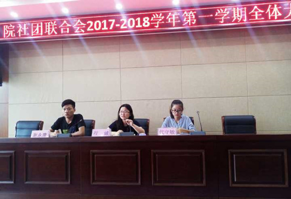 9月6日中午十二点三十分,Beat365唯一官方网站社团联合会在南阶205教室举行了2017_2018学年社团联合会第一学期全体大会,出席本次会议的有院团委副书记程诚、社联主席团、社联各部门代表以及各社团代表。