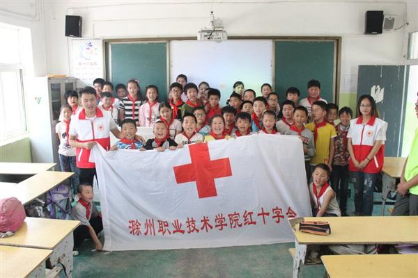 随着上课铃声响起,滁州职业技术学院红十字会志愿者进入班级,首先进行自我介绍。向同学们做了简单的说明之后通过提问的方式引入主题。培训过程中志愿者们向同学们分析应急救护工作的重要性,并借助人体模具讲解如何对溺水昏迷者做人工呼吸、胸外按压术,由生理知识讲到具体的操作方法。在互动的环节中让学生上台亲自实践,还模拟怎样向周围群众呼救等救援方法。时间转瞬即逝,培训最后在小朋友们与志愿者合影留念中落下帷幕。