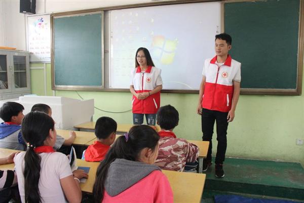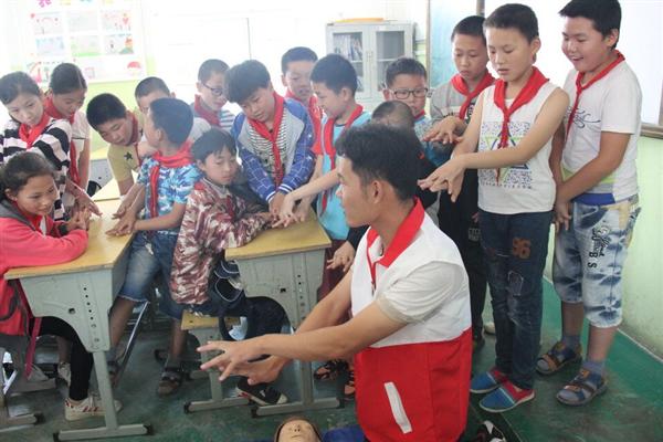 2017年6月7日,我院红十字会志愿者成员来到来到仓镇小学对这里的学生进行应急救护培训。