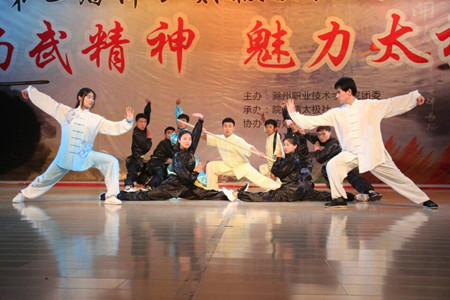 本届活动由院大学生艺术团带来开场舞《凤阳花鼓》,舞蹈结束活动正式开始。此次活动以祥云太极健身团队与院乾清太极社的太极表演为主,期间也穿插其他各类武术表演。其中太极表演包括陈氏太极拳、太极二十四式、太极剑和太极扇,充分体现出太极动作的刚柔并济、可攻可守的特点。祥云太极健身团队所表演的各式太极更是夺人眼球,引得台下观众欢呼叫好。院书法协会舞蹈与书法的结合表演、滁州学院的各类武术、院武道协会的散打、院跆拳道协会的跆拳道表演与院双截棍协会的双截棍表演也是精彩纷呈。为了活动的趣味性,在表演之中还穿插了两个互动环节。活动最后,由院大学生艺术团所跳舞蹈《凉凉》告示活动圆满结束。活动时长虽不到两个小时,但其所蕴含的中华武术内涵却是令人惊叹的。