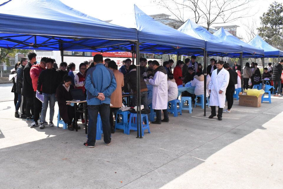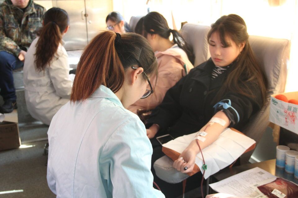 简短的启动仪式后,志愿者代表有序走向义务献血车,用青春热血实践号召。