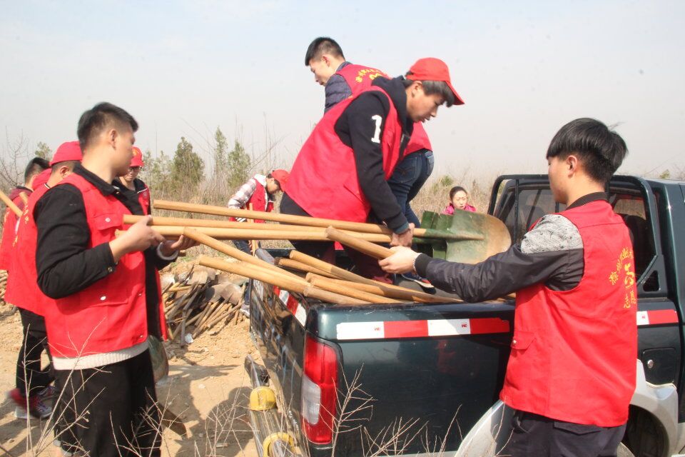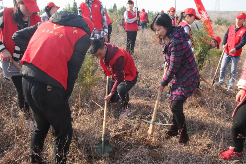 志愿者们早早地来到林场,活动现场彩旗飘飘,人头攒动,同学们精神饱满,斗志昂扬。在简短的仪式之后,志愿者们来到指定植树点,各个摩拳擦掌:打窝、扶苗、培土……各司其职,忙得不亦乐乎,现场一片生机勃勃,春意盎然的热闹景象。