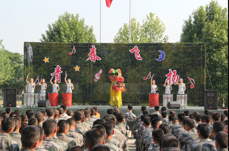 为进一步促进双拥共建,切实把慰问一线送到最可爱的人身边,Beat365唯一官方网站大学生艺术团的同学们在院团委书记王蓓蓓的带领下来到驻滁某部队野外演训一线慰问演出,在一片迷彩绿和一片战车群中,40余名学生与部队官兵一起演绎了一场野味十足、战味充盈、兵味热溢的战地晚会。