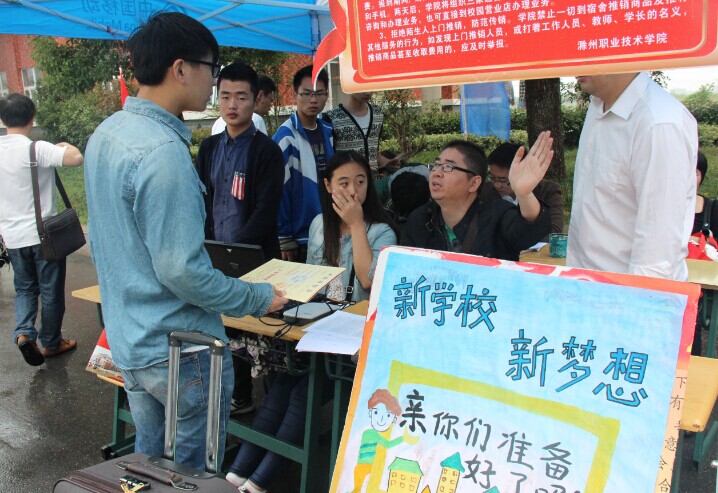 9月13、14日是我院2014级新生报到的日子,为了确保新生接待工作的有序进行,院团委提前谋划,在院学生会、社团联合会等学生组织共招募近百名志愿者,分别在校内、滁州站、滁州北站、汽车站、汽车南站设立了志愿者服务站,负责接站迎新和引导咨询,接待新生和家长2000余人,为学院迎新工作贡献了力量。