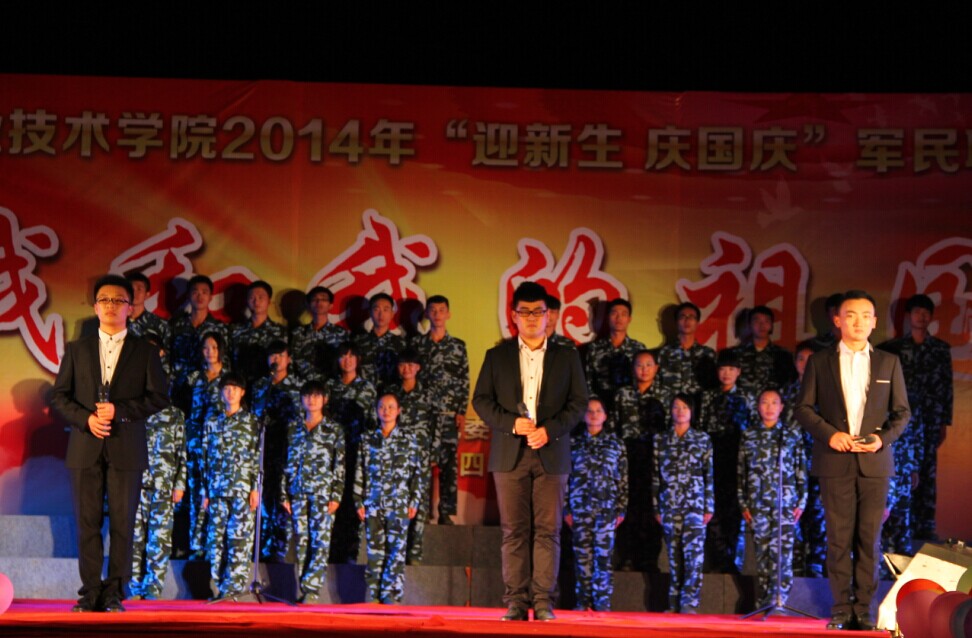 9月25日晚,由院团委主办、中国移动公司协办的“我和我的祖国”2014年迎新生、庆国庆军民联欢晚会在我院老操场拉开帷幕。院党委书记张勇、团市委书记孙枝娟、副院长程一斌、江洁、汪上、院长助理穆松、滁州移动分公司总经理程江、总经理助理江煜、73092部队指导员郭凯、以及各系、部、处室领导与我院大一新生一同观看演出。