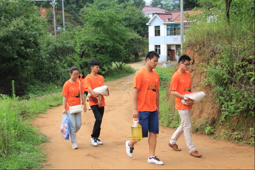 位于大别山区的南溪镇经济落后,人均收入低,迫于生计,父母常年外出打工,留守儿童数量较多。大山阻隔的只是信息,却阻挡不了实践队员们的热情。大家首先来到留守儿童的家里,为留守儿童送去了书包、文具以及大米、食用油等,看到漂亮的书包和精致的文具,小朋友们露出了开心的笑容。队员们和留守儿童们敞开心扉进行交流,并且提供一对一的心理辅导,拉近了与小朋友们的距离。