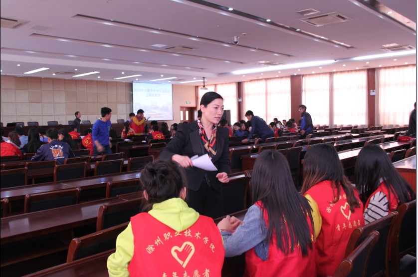 院团委书记王蓓蓓希望青年志愿者们通过工作来展现我院大学生的精神面貌和良好形象,让我们秉承“奉献、友爱、互助、进步”的青年志愿者精神,把青年志愿者活动作为展示滁州,展示我院的一扇窗口,为服务滁州地方经济建设贡献我们的一份力量。(文/图:院团委)