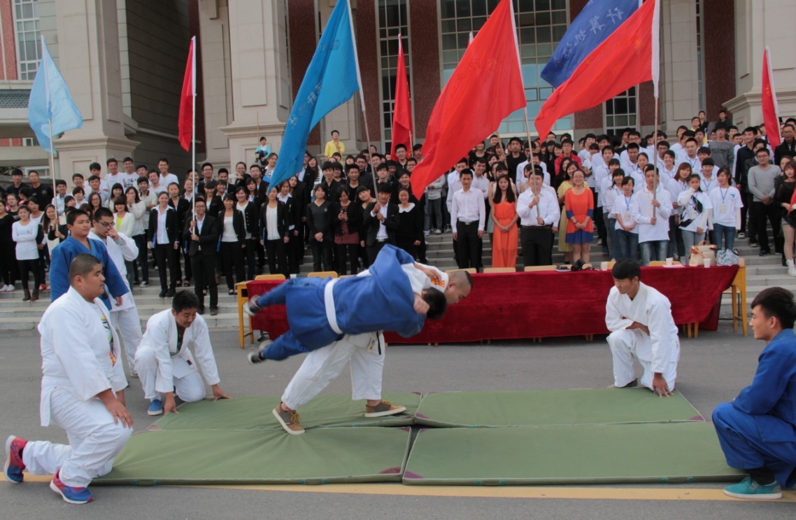 开幕式上,来自我院各系部的42个社团依次进入会场,他们以饱满的热情,铿锵的步伐,充分展示了社团风貌。有的社团还给大家带来了精彩的特色表演。艺术团的骑马舞,摔跤柔道协会的即兴摔跤表演,舞韵健身协会的动感街舞,双截棍协会的双截棍表演都给现场观众留下了深刻的印象。