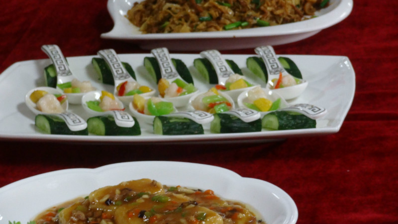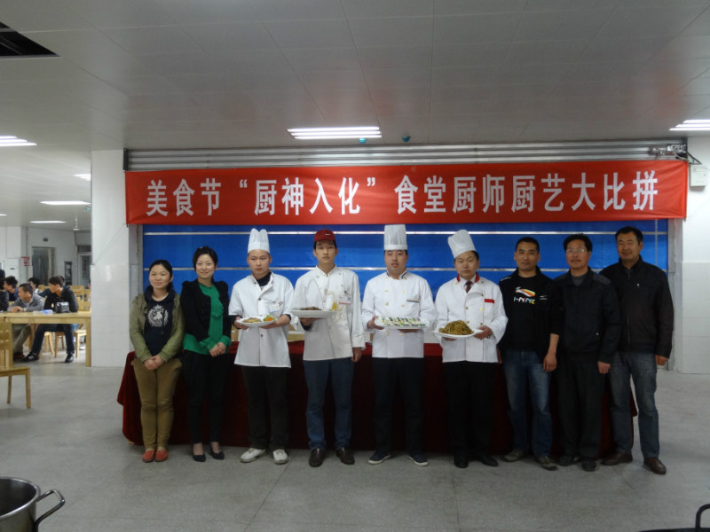本次比赛由学院四个食堂派出优秀的厨师参赛,他们分别是:来自锦昊餐饮公司的李友刚厨师,他的参赛菜品是锦绣虾仁;来自碧荷餐饮公司的刘宝洋厨师,他的参赛菜品是一品扒豆腐;来自翰林餐饮公司的余法厨师,他的参赛菜品是拉皮香菜肉丝;来自合肥智厨餐饮公司的彭亚厨师,他的参赛菜品是金芽银丝。